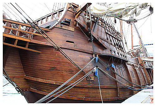 全長約55公尺,高40公尺,重500多噸,有6層甲板、3大桅桿、7張帆