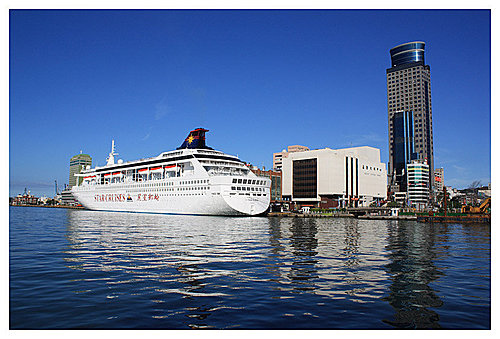 隔了幾天後的周末又在同地點看到了巨大的麗星郵輪停泊
