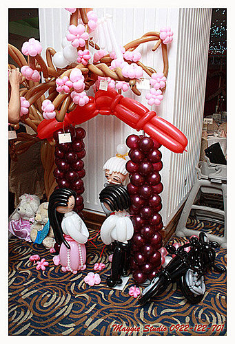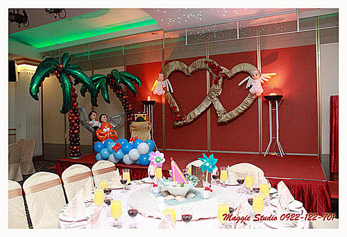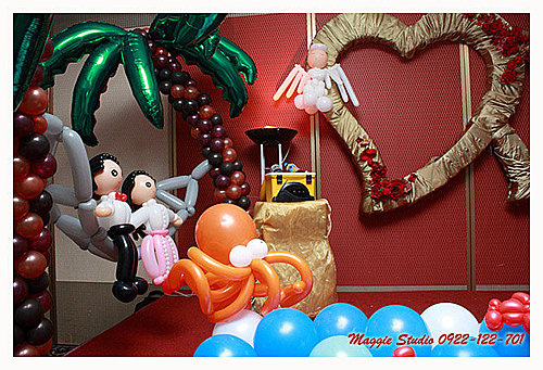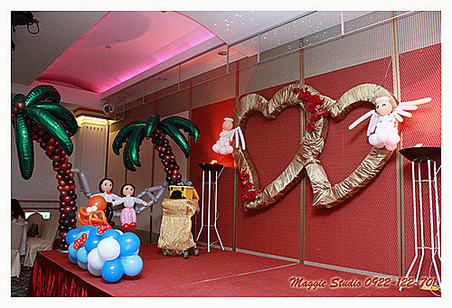 這場婚宴的佈置以汽球為主軸有別於一般用鮮花或紗幔佈置的風格