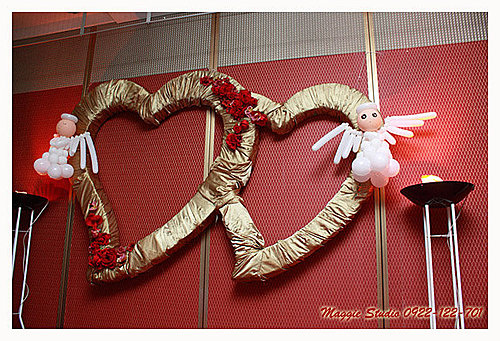 ▲進入會場看到的一區佈置,看到一對戀人在月老廟前手裡牽著紅線,用汽球做的栩栩如生,右下角是什麼呢?