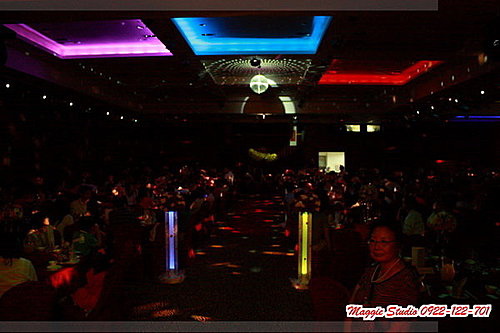 ▲汐止好料理的新人進場後,有安排一小段燈光秀,其實跟一般的上菜秀差不多,除了有音樂陪襯之外,就是天花板的燈光變換,少了服務人員穿梭在宴會廳中間罷了。